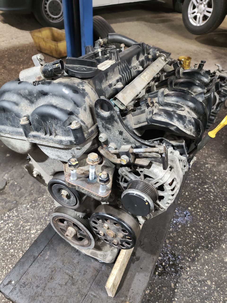 При выполнении работ по замене силового агрегата мы рекомендуем одновременно провести ряд сопутствующих процедур: замена сцепления (для механической КПП), обновление ремня ГРМ и помпы, установка нового радиатора охлаждения, замена опор двигателя, обновление топливных фильтров и проводов высокого напряжения.